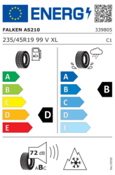 Dankzij de "nanodesign 4D"-technologie is Falken's Euroall Season AS210 235/45 R19 99V XL MFS M+S 3PMSF 10% efficiënter dan zijn voorganger (de AS200-versie). Het AUTOBILD ALLRAD magazine en het vakblad "Gute Fart" bevelen deze band aan vanwege zijn kwaliteiten.